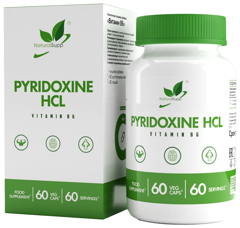 Natural Supp Pyridoxine HCL Vitamin B6, 60 капсул